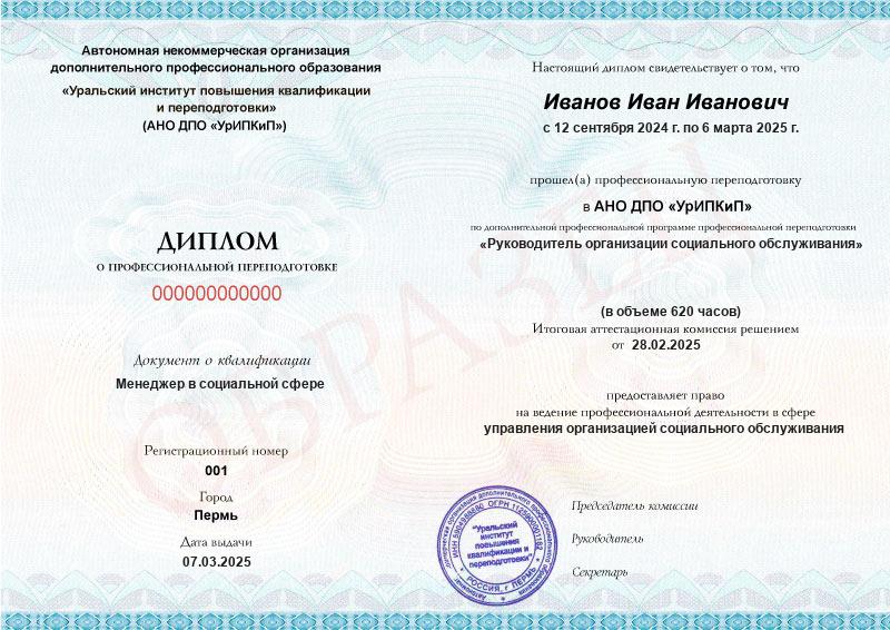 Да, дипломы и удостоверения оформляются в соответствии с действующим законодательством РФ. Документы печатаются на специальных бланках, заверяются печатью АНО ДПО «УрИПКиП».