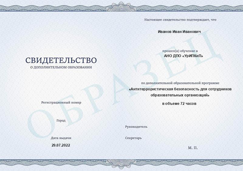 - Повышали квалификацию в АНО ДПО «УрИПКиП» – вам будет выдано удостоверение.
