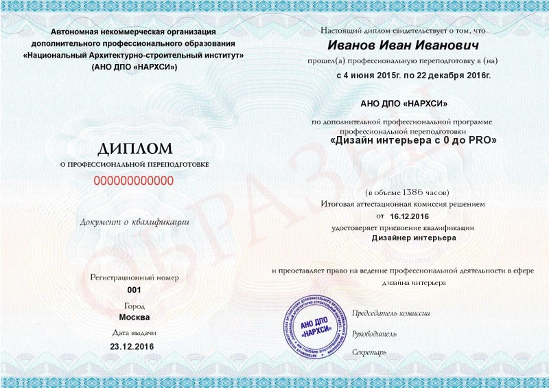 - Образец диплома о профессиональной переподготовке.