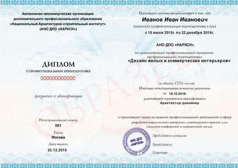 - Образец диплома о профессиональной переподготовке.