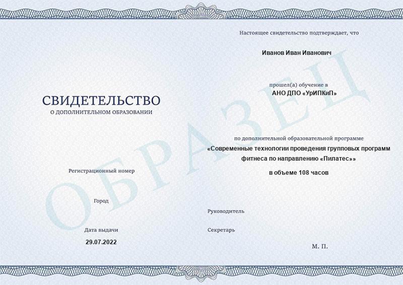Современные технологии проведения групповых программ фитнеса по направлению «Пилатес» (108ч)