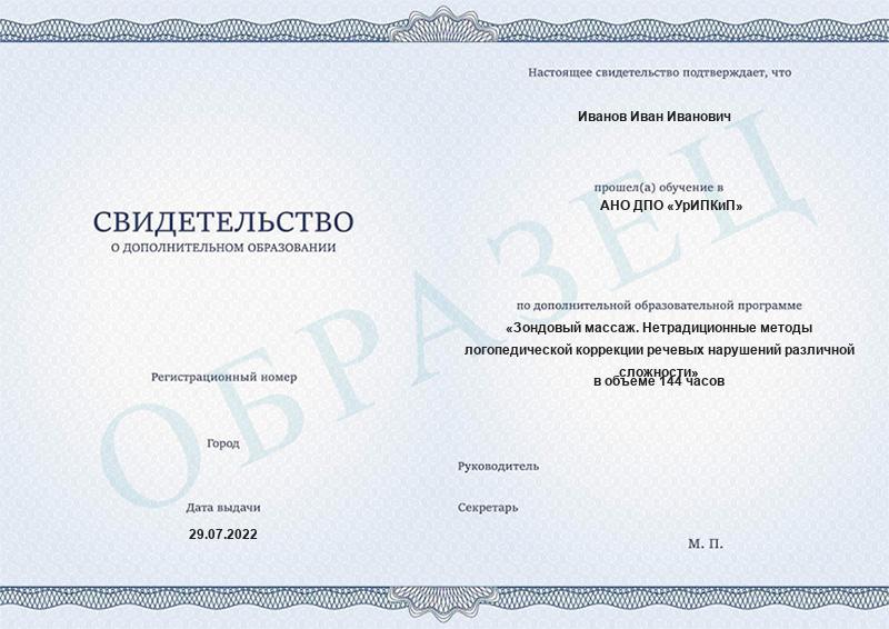 Зондовый массаж. Нетрадиционные методы логопедической коррекции речевых нарушений различной сложности (144ч)