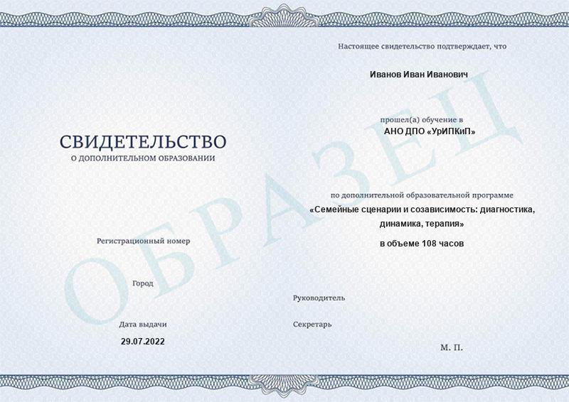 Семейные сценарии и созависимость: диагностика, динамика, терапия (108ч)