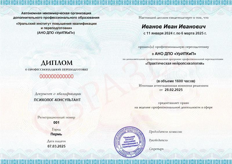 Пройдите обучение на психолога-консультанта с дополнительной специализацией, получите диплом о профпереподготовке и используйте нейропсихологический подход в работе с клиентами