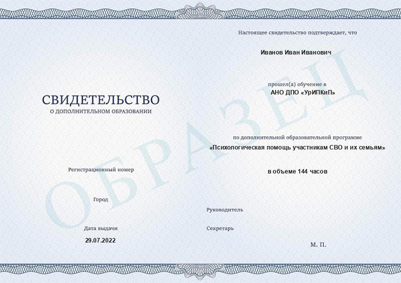 - Повышали квалификацию в АНО ДПО «УрИПКиП» – вам будет выдано удостоверение.
