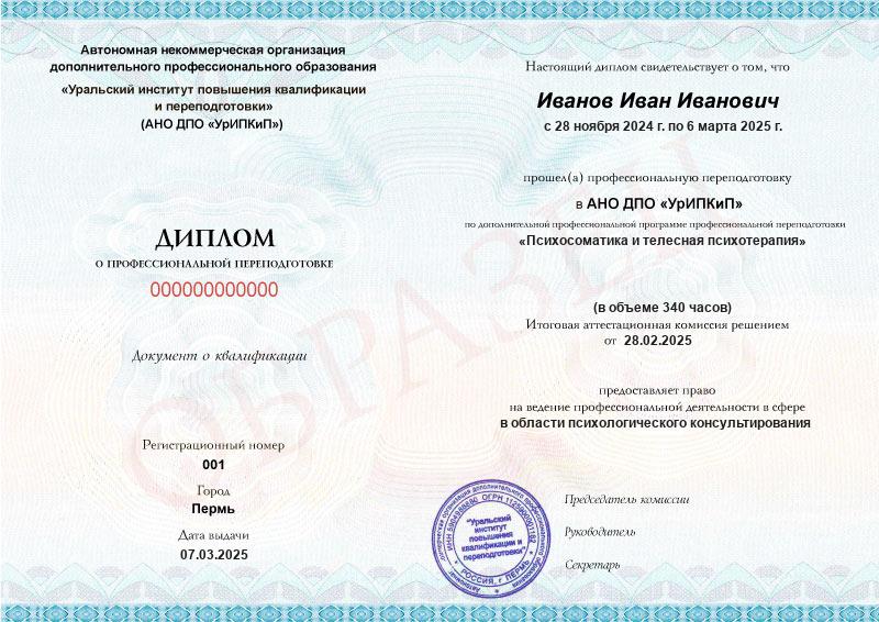 Да, дипломы и удостоверения оформляются в соответствии с действующим законодательством РФ. Документы печатаются на специальных бланках, заверяются печатью АНО ДПО «УрИПКиП».