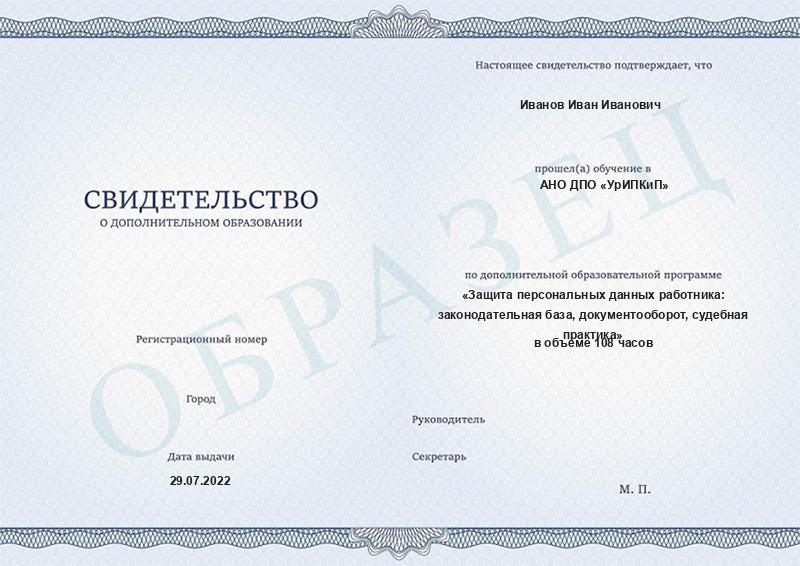 - Повышали квалификацию в АНО ДПО «УрИПКиП» – вам будет выдано удостоверение.